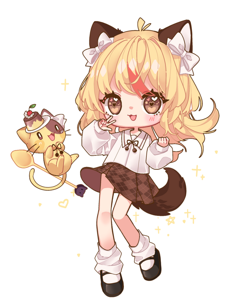 languages: english, japanese, cantonese, mandarin (60%)A forgetful but friendly pudding cat. She has lived at a cat god’s shrine since she was young, and now works as a shrine maiden.You can find her working, drawing or dreaming about someone . . .